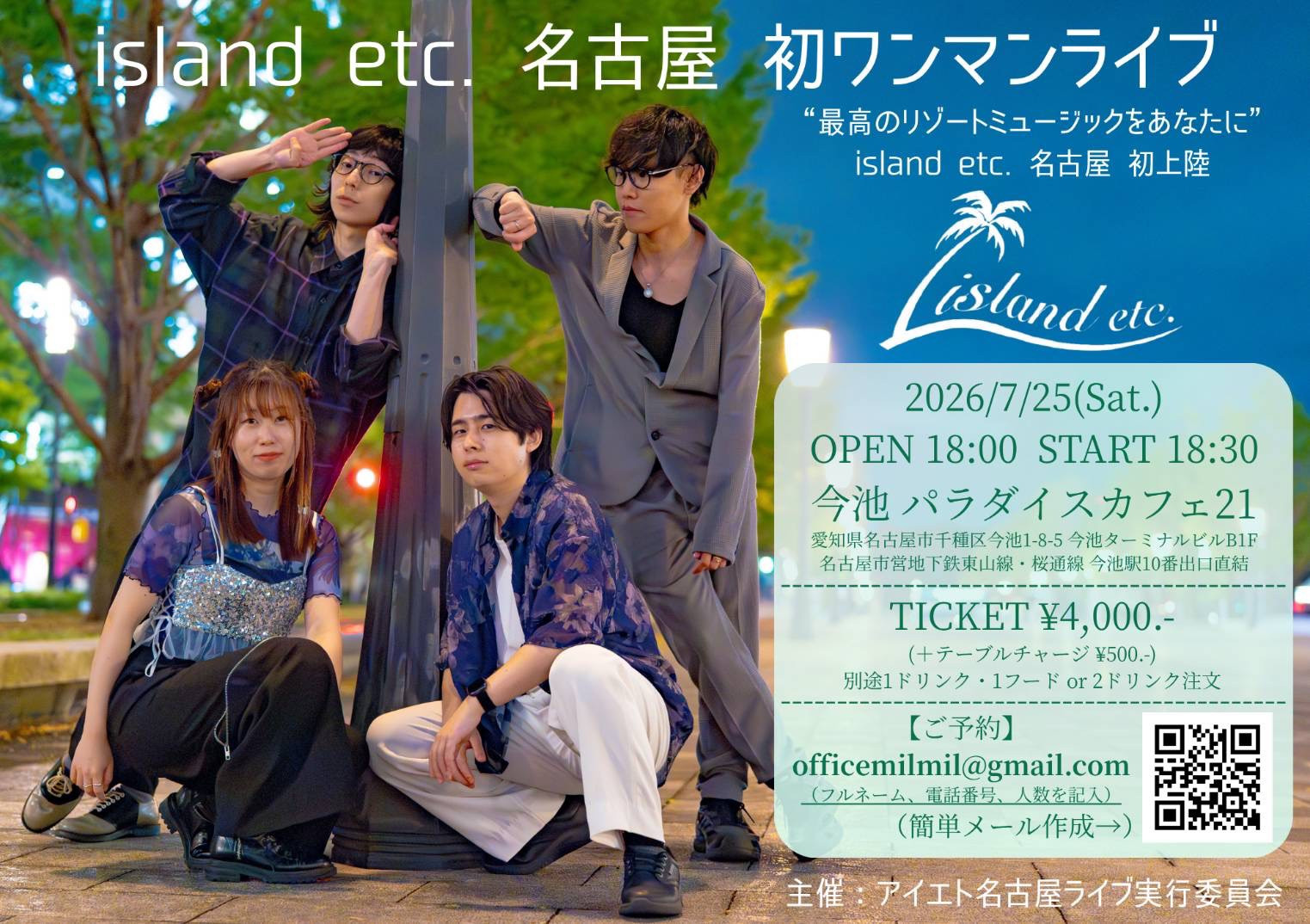 island etc. 名古屋 初ワンマンライブ開催決定!